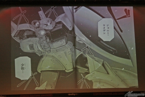 本作は当初、5巻くらいまでで終了かと思っており「次は『ジョニー・ライデンの復讐』か『ジョニー・ライデンの花嫁』か?」などと話していたそうだが、単行本もなんと先月に第12巻が発売。ちなみに「ギレン暗殺計画」を連載していた時も、「次は『ハマーン暗殺計画』か?とか、『暗殺シリーズ』をつくろうとか話していた」そうで、会場からは笑いが起こった。