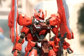 ▲外伝「鉄血のオルフェンズ月鋼」に登場する機体「トリアイナ」の作例も展示!