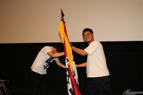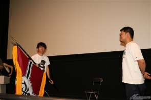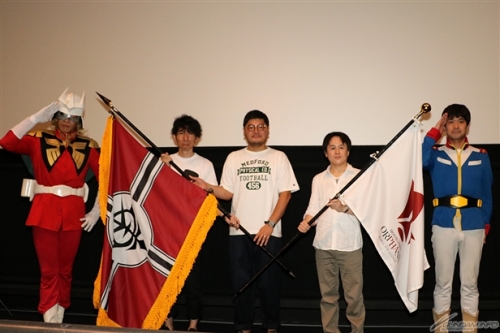 最後に、『サンダーボルト』小形プロデューサーから『THE ORIGIN』谷口プロデューサーへと、「ジオン軍旗」の返還セレモニーが行われ、登壇者5人それぞれからのコメントをもって本イベントは幕を下ろした。