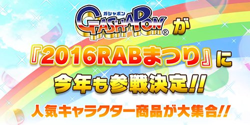 今週末9月10日(土)・11日(日)に青森県の青い海公園・アスパムにて開催される「2016 RABまつり~きて・みて・いいね~」に、バンダイの人気ガシャポンのブースの参戦が決定した。