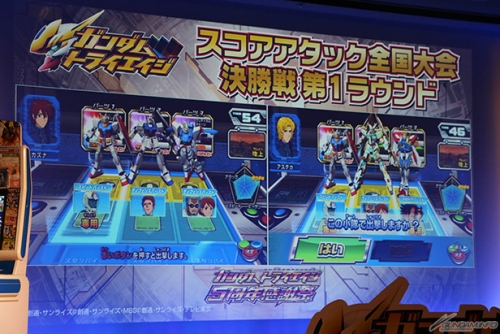 スコアアタックは、「ガンダムゴッドマスター」(パイロット:ドモン・カッシュ)、「ガンダムトライゼータ」(パイロット:ジュドー・アーシタ)、「フルバースト・サイコ・ガンダム」(パイロット:アムロ・レイ)を相手に、「鉄血の6弾」のカードのみ使用可能。自分のアビリティはもちろん、相手のアビリティもうまく利用して戦いを組み立てる戦略が重要となる。