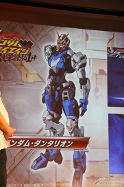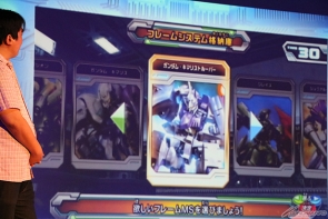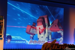 アニメに関するトークが一段落したところで、ガンダムトライエイジの開発担当であるバンダイ・若生貴幸氏が登場し、10月上旬稼働予定の「ガンダムトライエイジ 鉄華繚乱1弾」の最新情報が発表された。