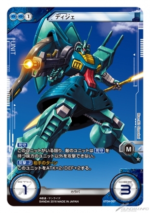 ▲「天空の覇者」に収録された新ユニット。6ダメージという高いユニット除去力と除去に成功した時のATK上昇が魅力。【死守】+「ST03-013 シャア・アズナブル」のDEFが6なので、この環境の黄では必須とも言えるユニットになりそうだ。