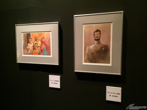 ▲本編映像用に描き下ろされた「ジオン・ズム・ダイクンの肖像画」と「ララァの家族」の原画も本邦初展示!