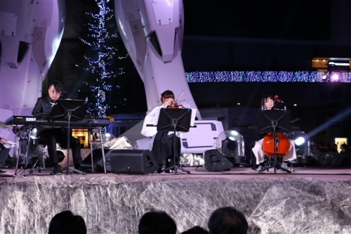 代表者挨拶の後には、ピアノ三重奏による『機動戦士ガンダム』のスペシャルメドレーが行われ、TVシリーズ最新作『機動戦士ガンダム 鉄血のオルフェンズ』で音楽を担当する横山 克氏編曲による「哀 戦士」、「めぐりあい」、「翔べ!ガンダム」の3曲が『機動戦士ガンダム』特別編集映像とともに生演奏された。
