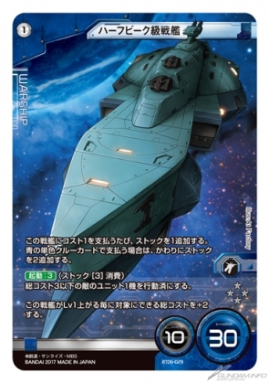 とはいえ、手札が続かないのか、他のユニットの出撃はなく、ストックを貯めて再度「ハーフビーク級戦艦」の【起動】効果で「ガンダムキュリオス(飛行形態)」を行動済にしてターンエンド。