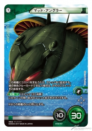 8ターン目、ヒロキさんは戦艦カード「BT06-057 マッド・アングラー」Lv1の【起動】効果を使用し、味方のユニット全てをこのターンの間、ATK+1する。