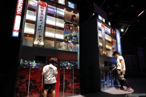 秋葉原を構成するアニメ、フィギュア、電飾パーツなどが詰まった「ガチャガチャ」ビルが登場。コインを入れると演出が始まる、ガチャガチャの新体験(別料金500円が必要)。