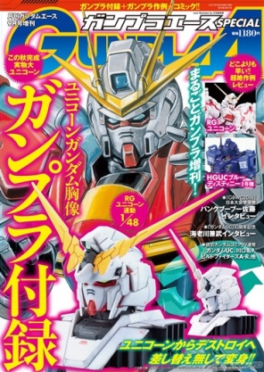 また、月刊ガンダムエース9月号増刊「ガンプラエースSPECIAL」の付録「1/48 ユニコーンガンダム ヘッドディスプレイ」や好評発売中の「ガンダムホビーライフ011」の付録「GHL特製水転写デカール」を使用した作例なども展示。