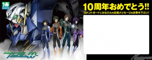 『機動戦士ガンダム00』10周年記念コーナーでは、ガンダムマイスターのスタンディと一緒に撮影できる背景と、ダブルオーガンダムと一緒に撮影できる2種類の背景が登場。