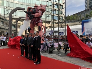 ▲開催に先駆けて1/12スケール(1.5m)の立像が登場!さらに「ザクII」と「ジム」も立ち並ぶ!