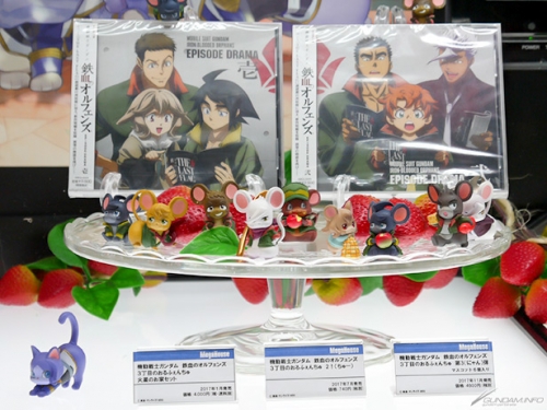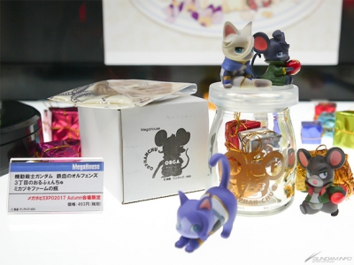 会場では、『機動戦士ガンダム 鉄血のオルフェンズ』公式スピンオフ企画「3丁目のおるふぇんちゅ」の最新アイテムが展示されたほか、第4弾となる「収穫祭だ4!」の発売決定が発表され、開発中のイラストや原型も公開。ガエリオ役の松風雅也さんが登壇するステージイベントも実施されたほか、会場限定アイテムの販売も行われた。