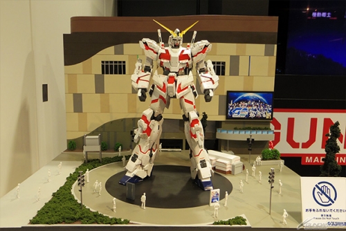 ▲お台場・ダイバーシティ東京 プラザに立つ「実物大ユニコーンガンダム立像」のジオラマがお出迎え!