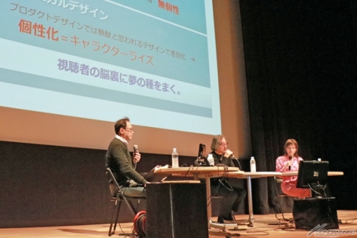 ▲トークショーではアニメーション研究家・五十嵐浩司さんと声優・羽田詩織さんと共に大河原さんの半生からメカデザイナーのテクニックまでを紹介!