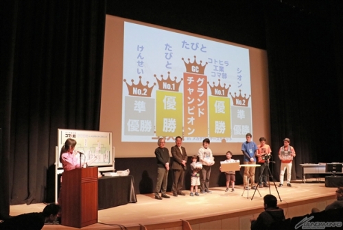 ▲午前に開催された「全日本製造業コマ大戦 稲城場所」では各部門優勝者に大河原さんサイン入りグッズを進呈!