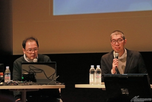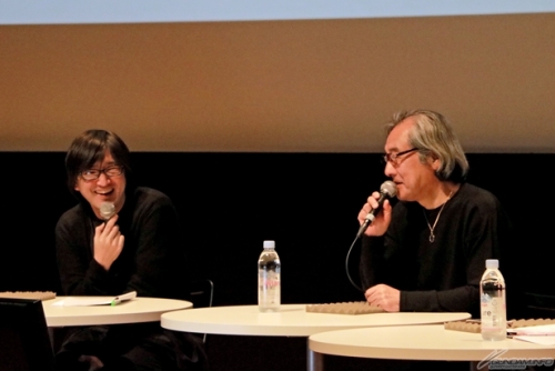 ▲後半のゲストは兵庫県立美術館 学芸員・小林 公さんと共に大河原さんの歴代代表作のアニメOPを観ながら解説。