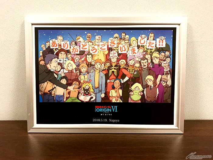 プレゼントは、登壇者の谷口プロデューサーと小形プロデューサーに加え、キャラクターデザイン・ことぶきつかささんのサイン入り「機動戦士ガンダム THE ORIGIN 完結記念イラスト」。