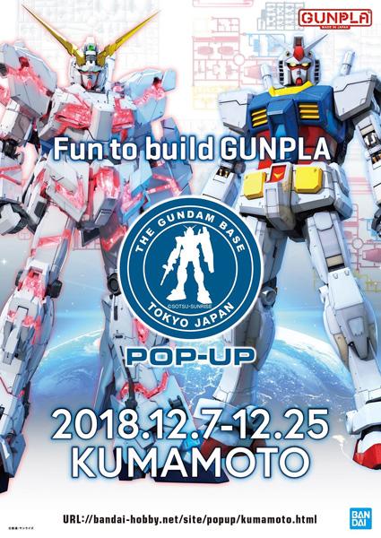 ガンプラ総合施設「THE GUNDAM BASE TOKYO(ガンダムベース東京)」の魅力を凝縮した“THE GUNDAM BASE TOKYO POP-UP in KUMAMOTO”が、今週末12月7日(金)より熊本パルコにて開催される。入場無料。