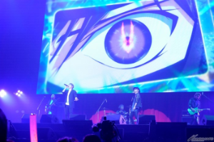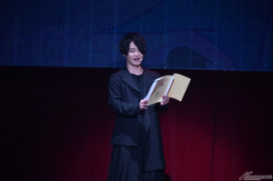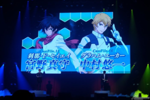 平成19年に放送されていた当時のオープニング映像が流れ、「エクシア…刹那・F・セイエイ…目標を駆逐する!」の名セリフと共に刹那役の宮野真守さんが堂々とステージに姿を現し、グラハム役の中村悠一さんも登場。戦争根絶の声を張り上げる宮野さんと、気迫をみなぎらせる好敵手を熱演した中村さんによる熱い演技に、会場からは大きな拍手が起きた。