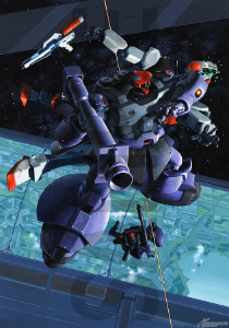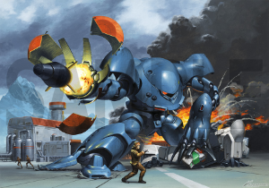 本展では、ガンプラの箱絵をその黎明期から描き続けてきた開田さんならではの魅力を最大限に表現。『機動戦士ガンダム』から『新機動戦記ガンダムW』までのアナログ原画のほか、『∀ガンダム』までのデジタル原画も登場し、迫力の展示が会場を埋めつくす。作品はいずれも、工業製品であり兵器でもあるガンダム特有のメカの魅力を表現しており、戦争状況で活躍するドラマ性をもって描かれている。