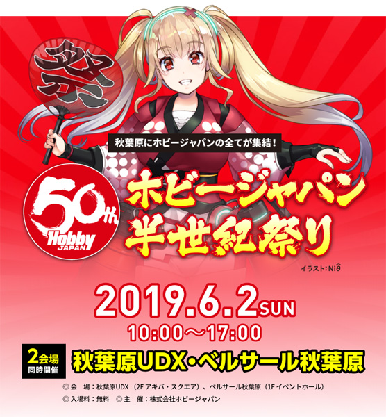 ホビーの総合企業・ホビージャパンの創業50周年を記念イベント「ホビージャパン半世紀祭り」が、6月2日(日)に東京・秋葉原UDXとベルサール秋葉原にて開催される。入場無料。