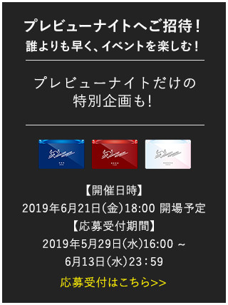 いち早くイベントを楽しめるスペシャルなプレビューナイトに、オーシャンステージ以上の会員様を抽選でご招待!フレイム・オーロラステージの会員様は、ご応募いただければ確実に当選!