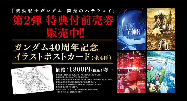 2020年劇場公開予定の『機動戦士ガンダム 閃光のハサウェイ』の、特典ポストカード付前売り券 第2弾が販売される。価格は1,800円(税込)均一。