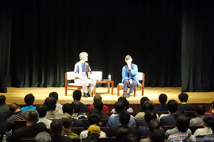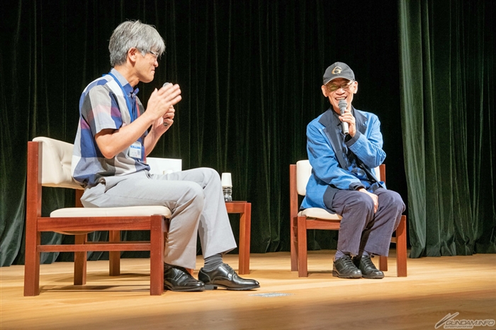 会場には、いち早く劇場版『ガンダム Gのレコンギスタ』を見ようと、応募総数およそ1,900人の中から抽選で選ばれた約180人が来場。上映後には、ファンからの熱い拍手を受け、富野由悠季総監督と福岡市美術館の山口洋三さんがステージに登壇し、興奮冷めやらぬ熱気の中、トークショーが実施された。