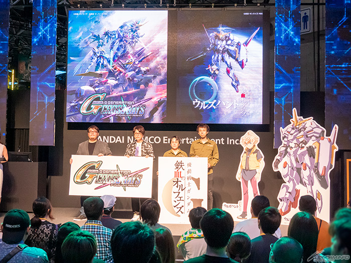 まず初めに、「機動戦士ガンダム 鉄血のオルフェンズ アプリ(仮)」から、プロデューサーの小川正和さんと藤原康則さんが登壇。今年1月6日(日)に東京・日本橋三井ホールで開催されたイベント「機動戦士ガンダム 鉄血のオルフェンズ 3rd Anniversary “THE REFLECTION”」でのみ公開された『機動戦士ガンダム 鉄血のオルフェンズ ウルズハント』のロングVer.PVを上映したのち、アプリの正式名が「機動戦士ガンダム 鉄血のオルフェンズG」となることを発表した。