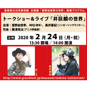 展覧会「富野由悠季の世界」島根会場の会期は、3月23日(月)まで。トークショー&ライブ「井荻麟の世界」のほか、劇場版『Gのレコンギスタ I』「行け!コア・ファイター」特別上映会&富野由悠季監督によるアフタートークなど、様々な関連プログラムも実施予定。