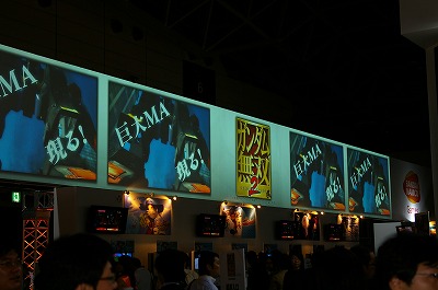 いよいよ発売日が来週16日(木)に迫ったPS2「機動戦士ガンダム00 ガンダムマイスターズ」と、人気アーケードゲームのPSP版である「ガンダムVS.ガンダム」もプレイアブル展示されている。