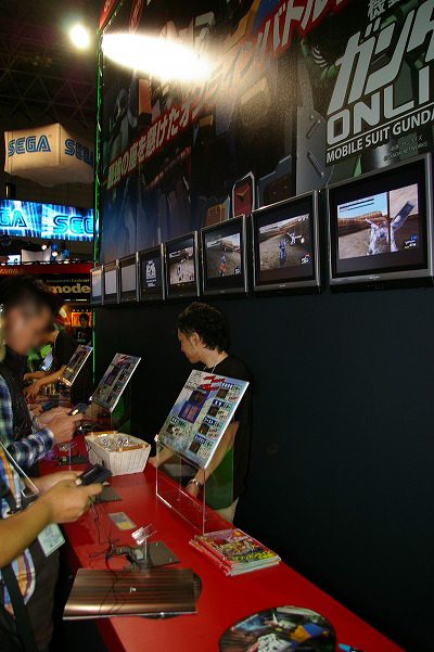 NTTドコモのブースでは、バンダイネットワークスのiモード向けコンテンツ「機動戦士ガンダムONLINE」がプレイアブル展示されている。