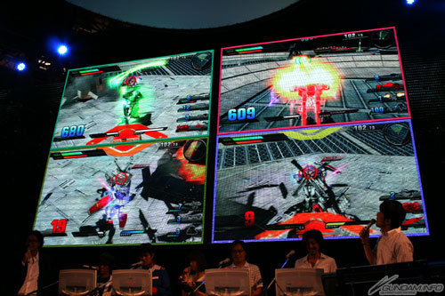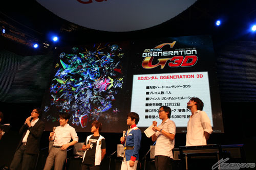 東京ゲームショウ2011のバンダイナムコゲームスブースでは、最新ガンダムタイトルを紹介する「ガンダムゲームスペシャルステージ」が9月15日にブース内特設ステージにて開催された。