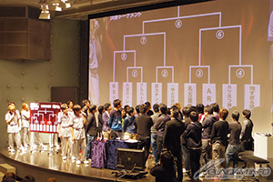 続いて出場チームが入場し、くじ引きでトーナメントが決まっていくと、徐々に緊張と興奮がステージを覆う。なお、このくじ引きで板倉隊長は、なんと一回戦の無い枠を引き当てている。他のチームの戦略や編成を一通り見てから戦うことができる、有利な枠とあってメンバーは大盛り上がり。