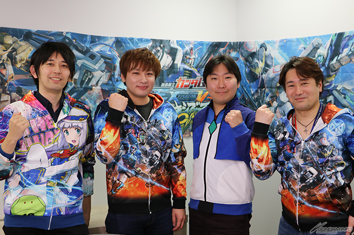 全国のアーケードで好評稼働中の人気対戦アクションゲーム「機動戦士ガンダム エクストリームバーサス マキシブースト ON」では、開発チームと交流マッチができる稼働2周年記念イベントが、3月15日(木)に開催された。