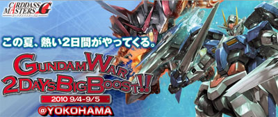 ガンダムウォー2010年ファーストシーズンの頂点を決める各大会の最終決戦や、当日参加型イベントなど、ガンダムウォーを思い切り楽しむ2日間のイベント「BIG BOOST!!」。9月4日(土)、9月5日(日)にてパシフィコ横浜にて開催される。今回は各大会の詳細ページが公開となった。