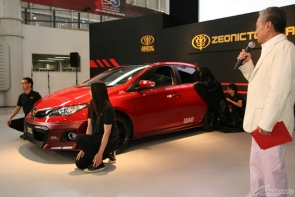 報道関係者をはじめ、多くの来場者が期待を込めて見守る中、ついに「シャア専用オーリス」市販モデルがその姿を現した。