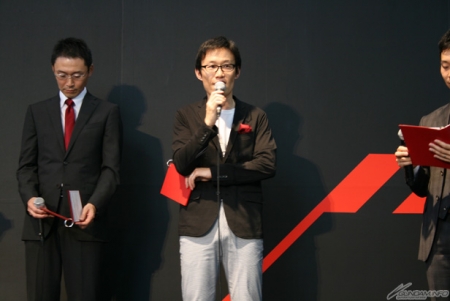 発表会では、シャア・アズナブル役の声優、池田秀一氏にくわえ、ジオニックトヨタ特別広報部員のアイリン・フルカワことSKE48の古川愛李さん、さらにジオニックトヨタ特別サポーターとして、衆議院議員の平将明氏が登場。