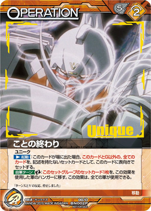 さらに、「第10弾『覚醒する魂』ブースタードラフト大会」の6位までの上位入賞者には、「ガンダムエピオン[†]」と茶新規オペレーション「ことの終わり」が各1枚贈られる。