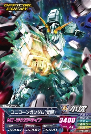 ▲「TPR-023 ユニコーンガンダム(覚醒)」(参加希望者)&スペシャルカードパック15(参加者)