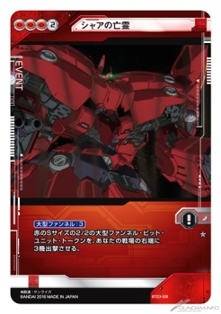 使用するイベントを同時に手札に持っておく必要はあるものの、カード1枚分のコストで2枚、あるいはそれ以上のカードを使用できる効果は実に驚異的で、恐ろしい爆発力を秘めている。代表的なカードは「トールギス」で、「作戦」デッキと呼ばれる新たなコンセプトのデッキを生み出し、「クロスウォーフェスタ」東京会場で優勝を飾ったのは記憶に新しい。