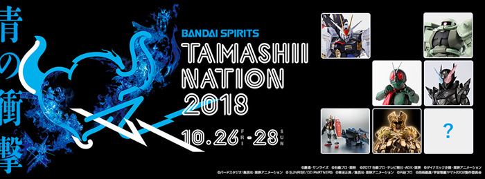 2018年より「バンダイ」から「BANDAI SPIRITS」へと青く生まれ変った「TAMASHII NATIONS」では、10月26日(金)から28日(日) にかけて、これから展開していくキャラクターやアイテムを一挙公開する「TAMASHII NATION 2018 -青の衝撃-」が開催される。