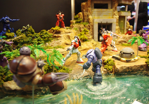 バンダイブースではガンダム関係のさまざまな新商品を展示中! ぜひご来場ください!