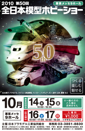 今年で50回目を迎える「2010 第50回 全日本模型ホビーショー」では、スケールモデルから、RCモデル、工作まで、年末にかけて発売される注目の新製品を一堂に展示。
