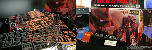 バンダイブースでは、ガンプラ30周年を記念した新ブランド「RG(リアルグレード)」の最新作「シャア専用ザク」をはじめ、第2部がいよいよ公開されるガンプラアニメ『模型戦士ガンプラビルダーズ ビギニングG』、劇場版が公開中の『機動戦士ガンダム00』、そして10月30日よりイベント上映が開始される『機動戦士ガンダムUC』など、話題の最新作の新製品が目白押しとなっている。