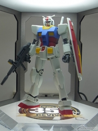会場では、ガンプラ35周年のテーマである「新生-REVIVE-」のもと、新生「HGUC RX-78 ガンダム」、「HGCE フリーダムガンダム」の姿が公開されたほか、『機動戦士ガンダム THE ORIGIN』、『ガンダム Gのレコンギスタ』、『ガンダムビルドファイターズトライ』などの最新アイテムを展示。