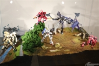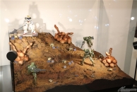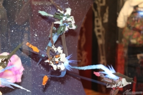 ▲会場内に足を踏み入れると、まずはド迫力のジオラマ展示が。現在放送中の『鉄血のオルフェンズ』第2期より、鉄華団・アリアンロッド艦隊・夜明けの地平線団による宇宙での三つ巴の混戦が再現されている。