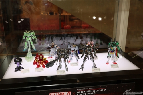 会場の外では、『鉄血のオルフェンズ』の他にも『ガンダムビルドファイターズ』と『機動戦士ガンダム THE ORIGIN』のガンプラを展示。さらに『鉄血のオルフェンズ』の関連グッズも展示されている。