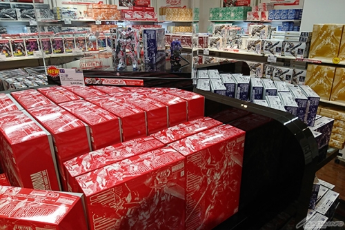 ショップスペースでは、今回初めて先行販売される「MG ガンダムアストレイ ゴールドフレーム[スペシャルコーティング]」をはじめとする、限定ガンプラの販売が行われ大盛況となっている。