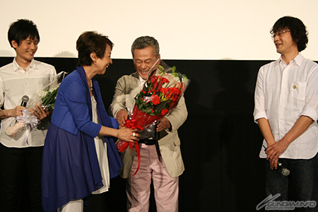 さらにこの日はスペシャルゲストとして潘 恵子さんが登場。episode 1から欠かさず劇場で見てきたという潘さんは、今回のepisode 7で念願の出演が叶った喜びを語り、登壇者ひとりひとりに花束を贈った。